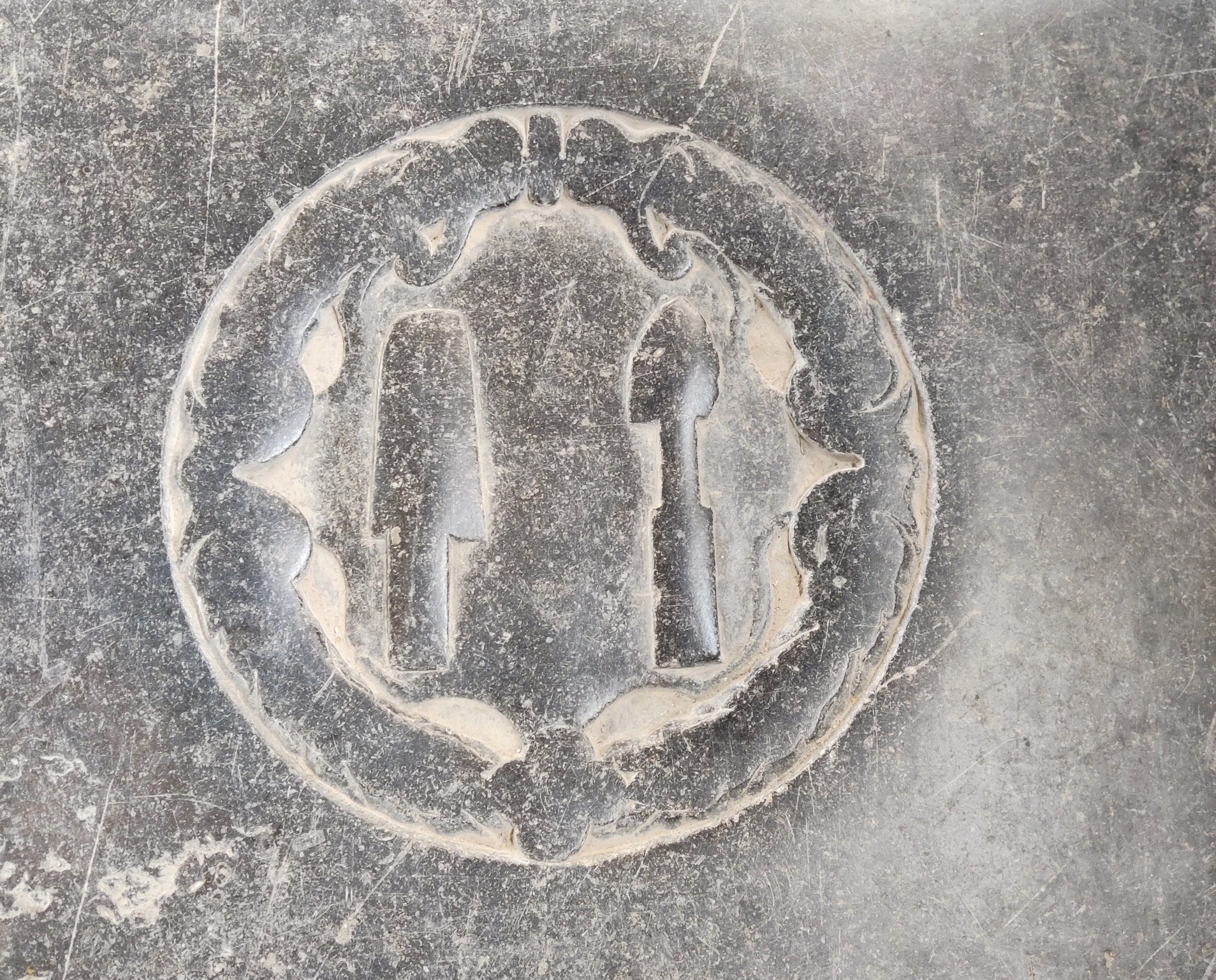 In de gang van de Veemarkt naar de kerk ligt een aantal verweerde grafstenen. Ze zijn afkomstig uit de kerk en worden nu als vloer gebruikt. Op één van de stenen zie je alleen nog…